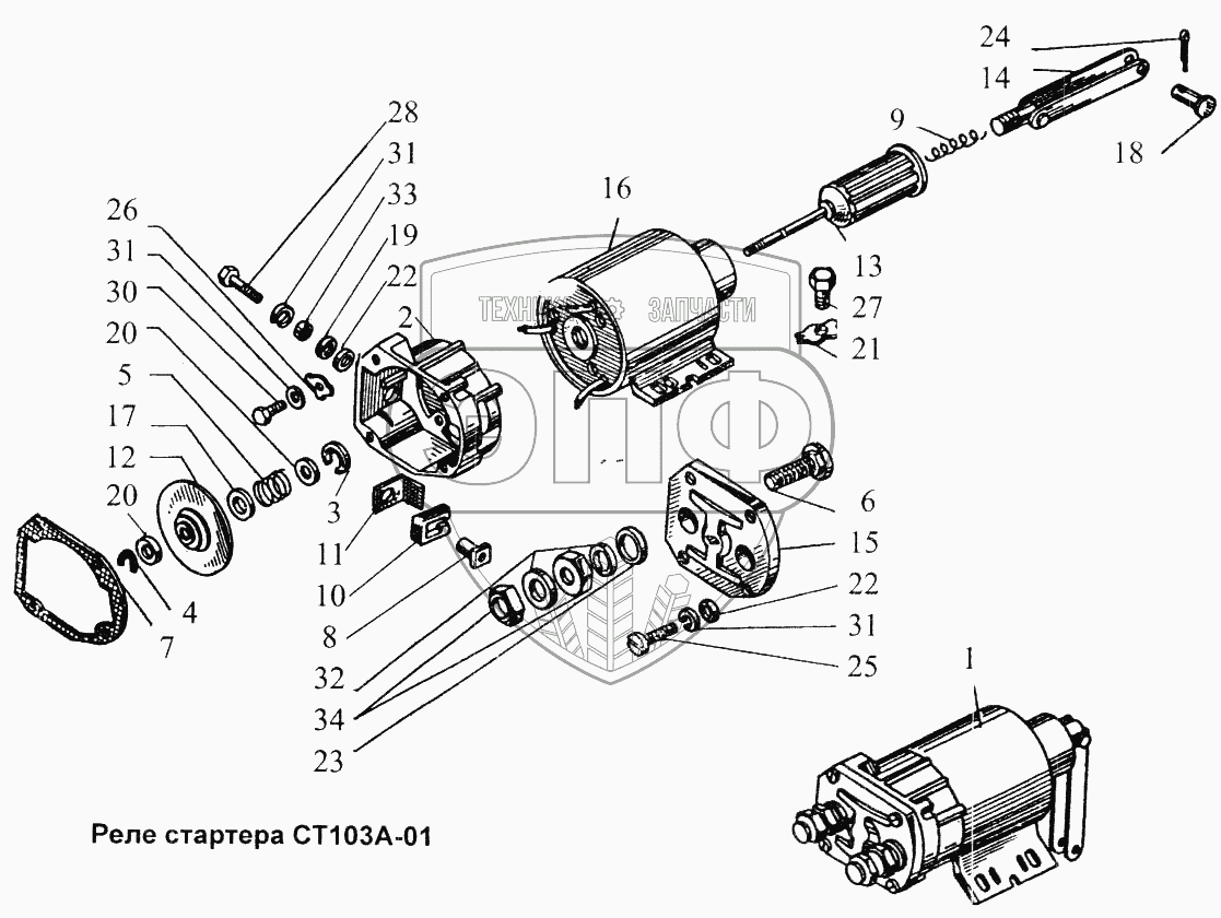 Каталог запасных частей к технике: ЯМЗ Общий (см. мод-ции). Реле стартера СТ103А-01