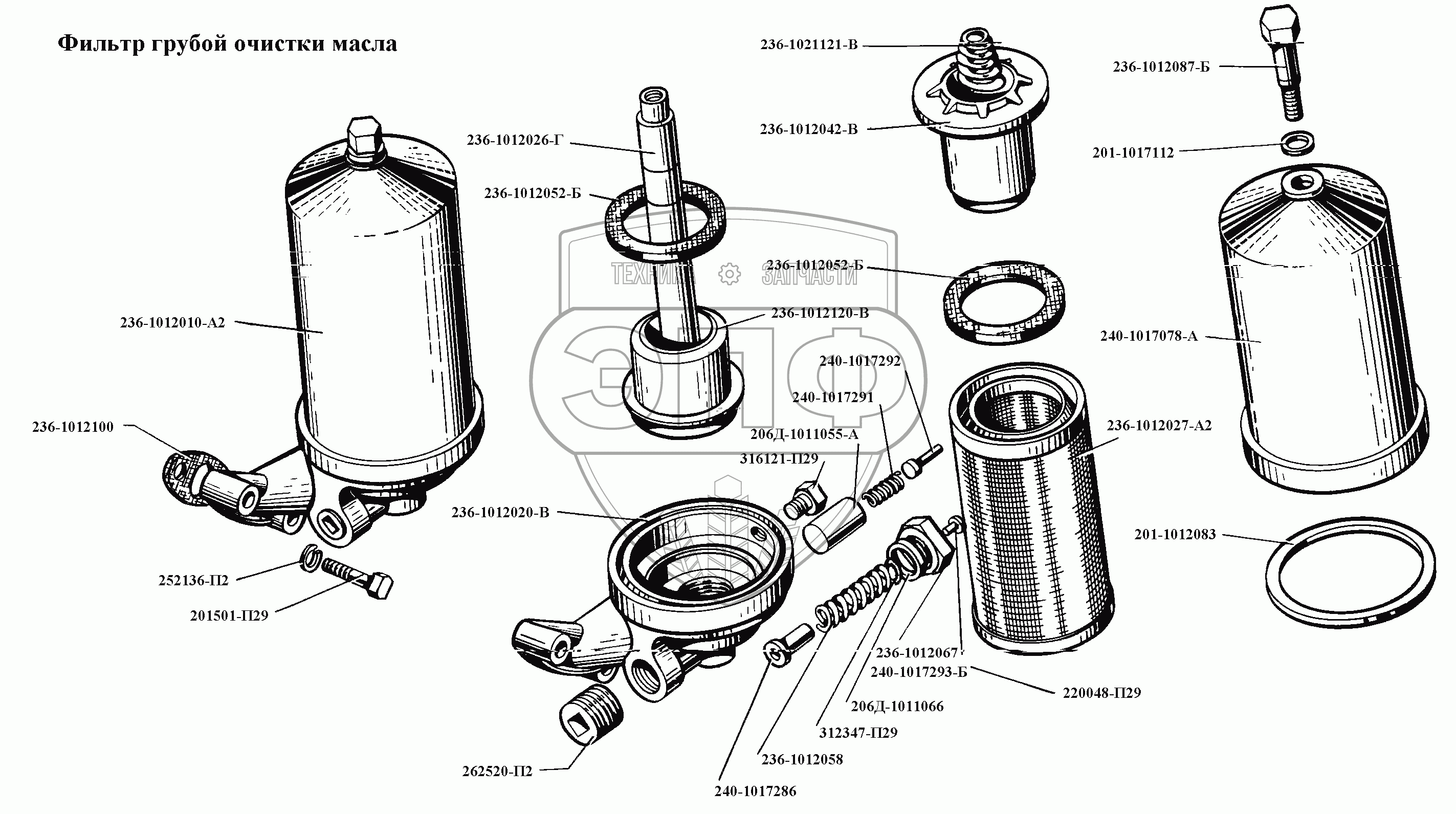 Каталог запасных частей к технике: ЯМЗ-236, -238, -238НБ. Фильтр грубой очистки масла