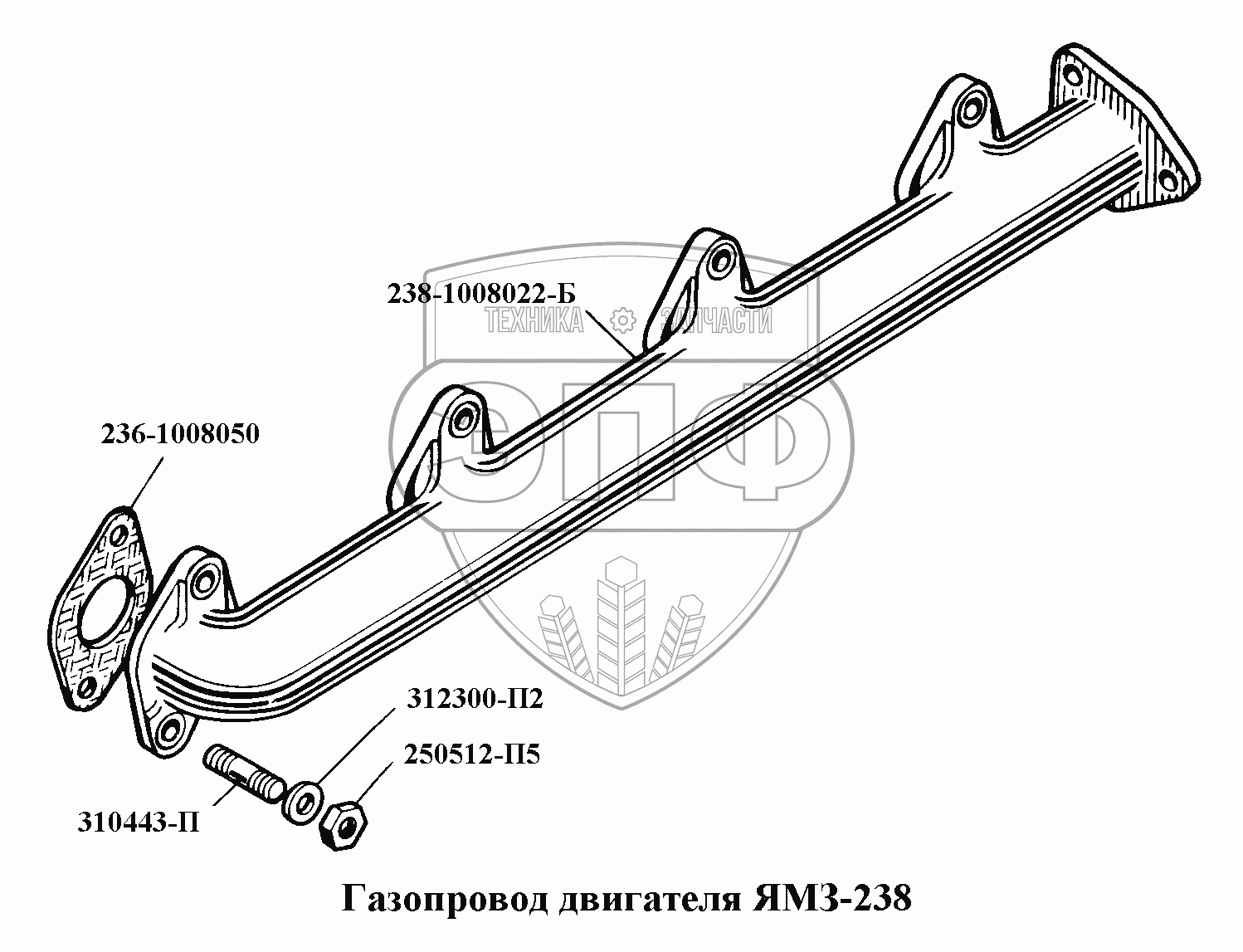 Каталог запасных частей к технике: ЯМЗ-236, -238, -238НБ. Газопровод двигателя ЯМЗ-238