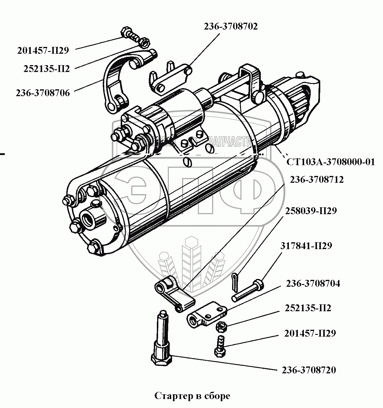 Каталог запасных частей к технике: ЯМЗ-236, -238, -238НБ. Стартер в сборе