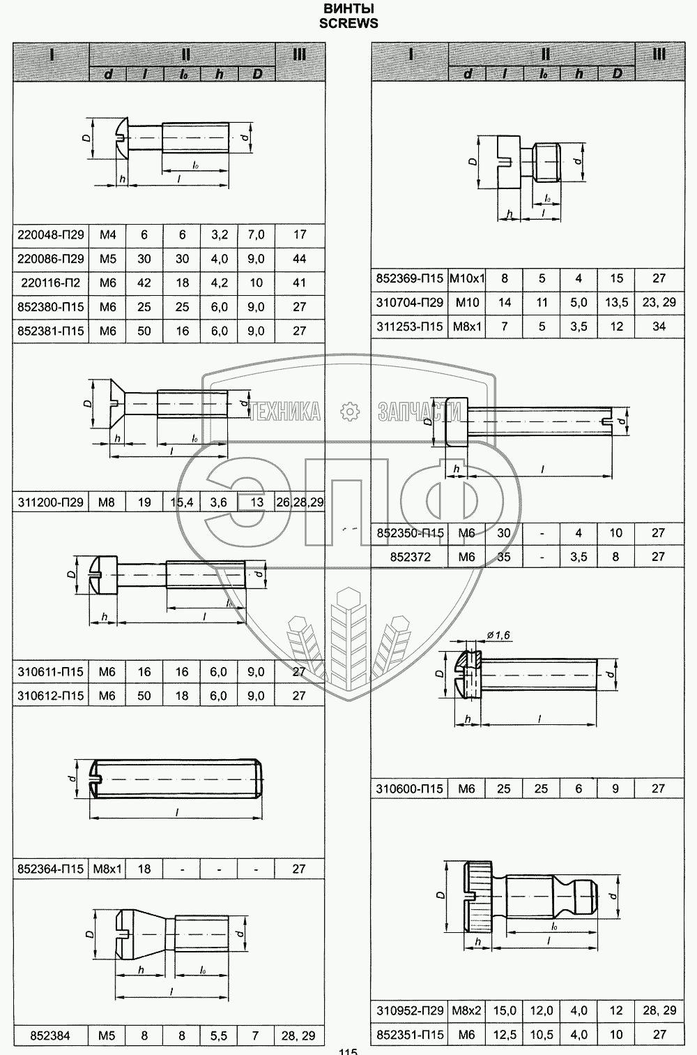 Каталог запасных частей к технике: ЯМЗ-236 М2 и 238 М2. Винты