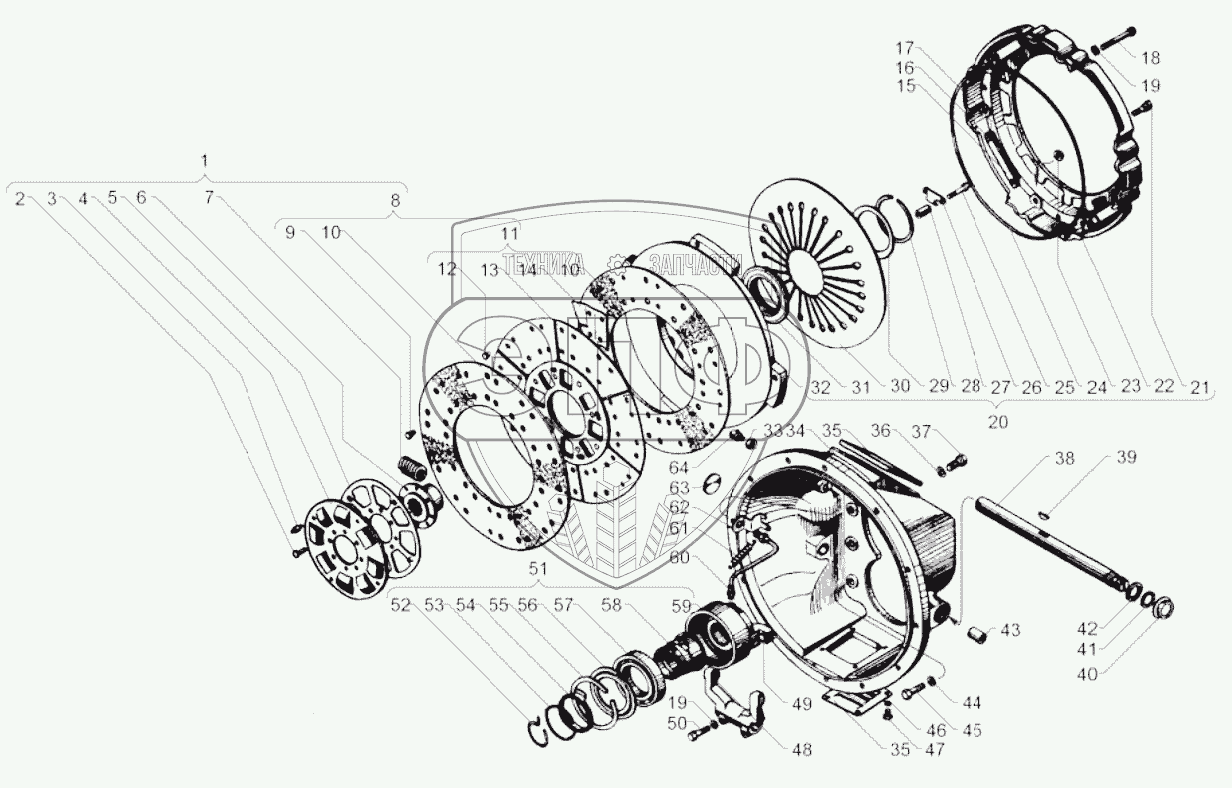 Каталог запасных частей к технике: ЯМЗ-236М2. Сцепления ЯМЗ-181-10