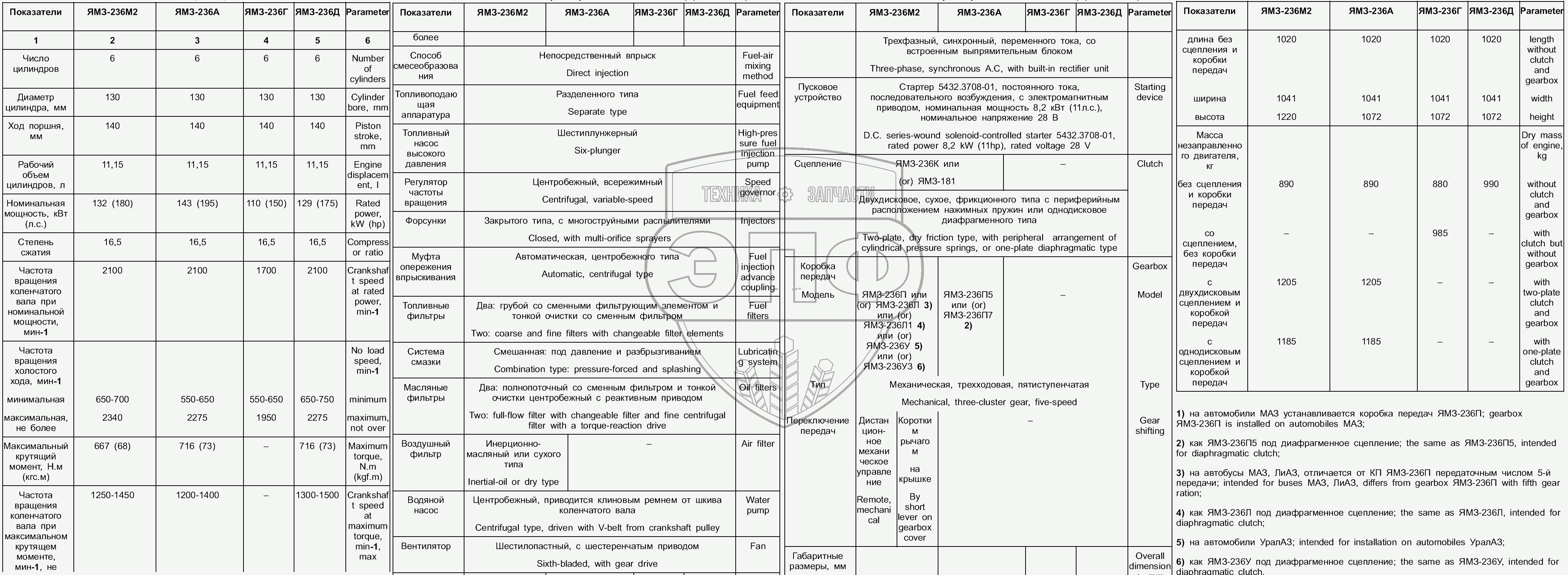 Каталог запасных частей к технике: ЯМЗ-236М2. Технические характеристики