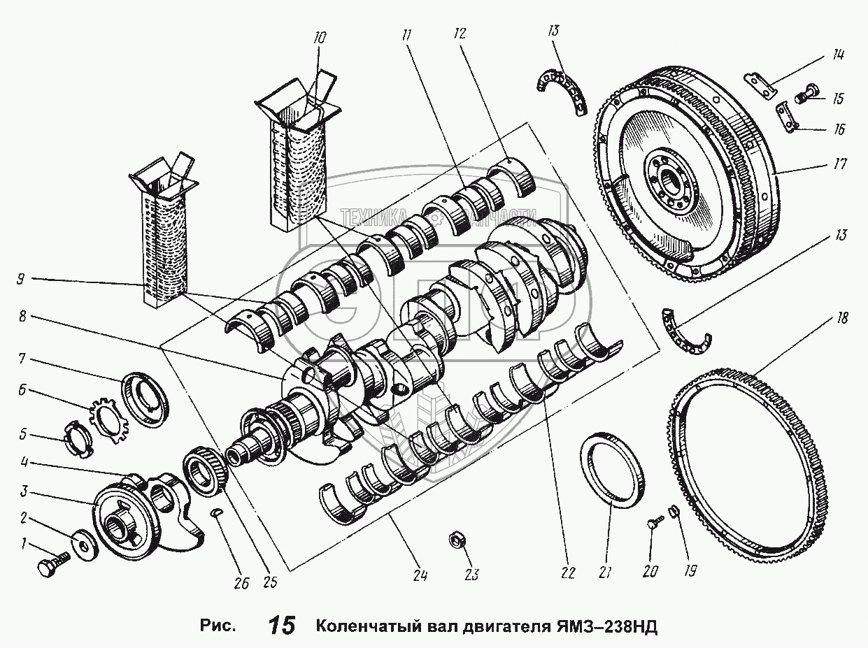 Каталог запасных частей к технике: ЯМЗ-238 НД. Коленчатый вал двигателя ЯМЗ-238НД
