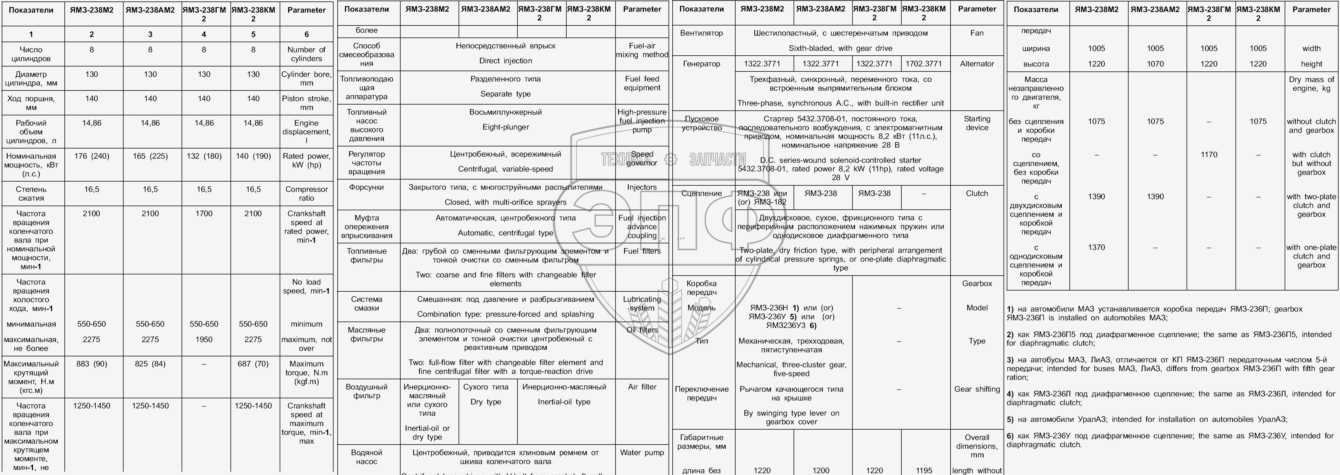 Каталог запасных частей к технике: ЯМЗ-238М2. Технические характиристики