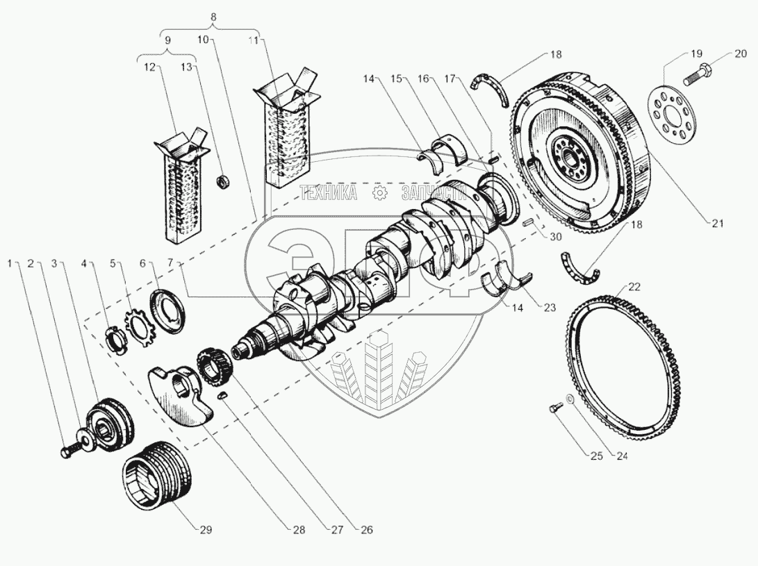 Каталог запасных частей к технике: ЯМЗ-238М2. Вал коленчатый и маховик