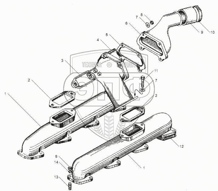 Каталог запасных частей к технике: ЯМЗ-238НД3, НД4, НД5. Коллекторы впускные