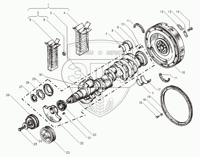 Каталог запасных частей к технике: ЯМЗ-238НД3, НД4, НД5. Вал коленчатый и маховик