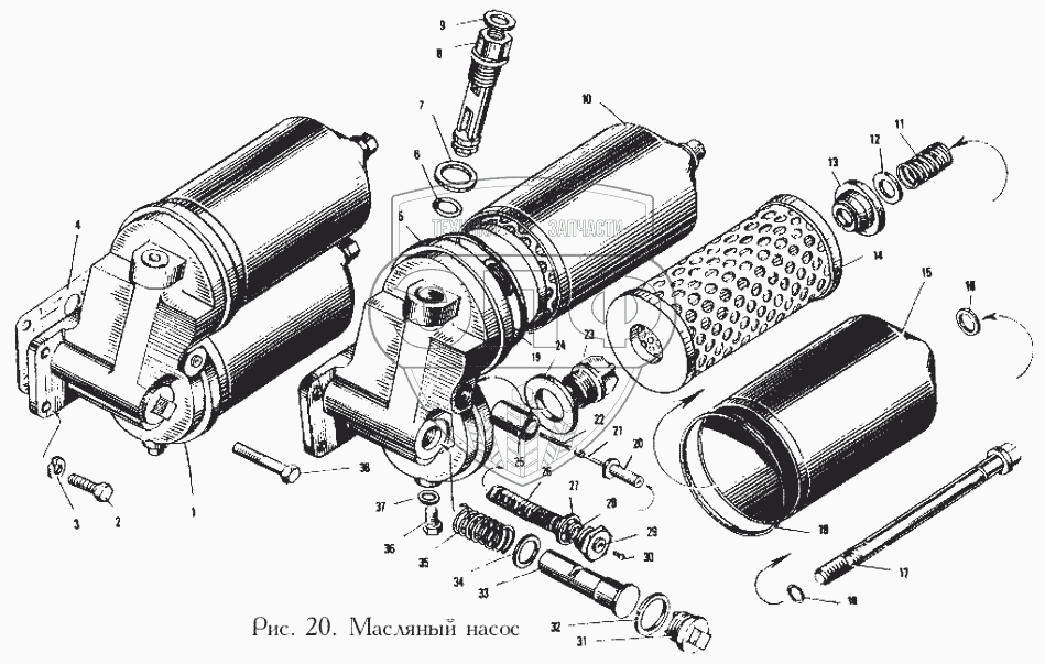 Каталог запасных частей к технике: ЯМЗ-240. Масляный насос