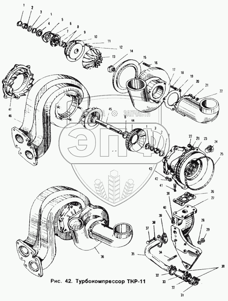 Каталог запасных частей к технике: ЯМЗ-240. Турбокомпрессор ТКР-11