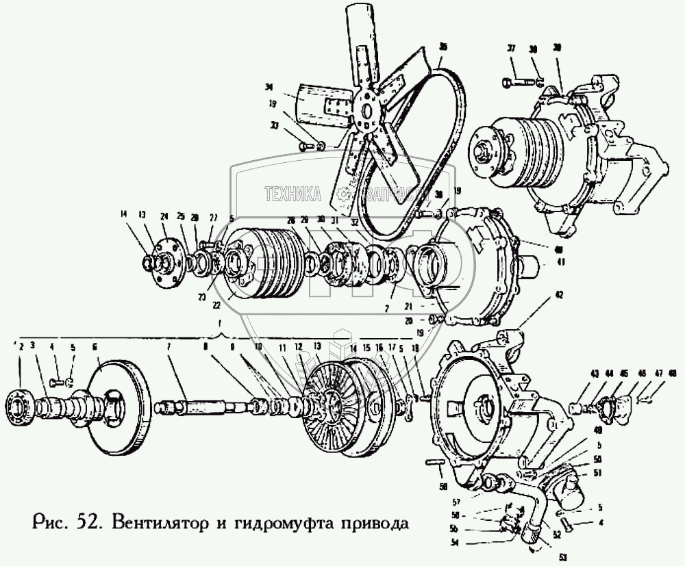 Каталог запасных частей к технике: ЯМЗ-240. Вентилятор и гидромуфта привода