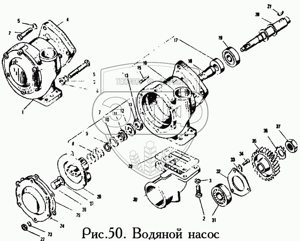 Каталог запасных частей к технике: ЯМЗ-240. Водяной насос