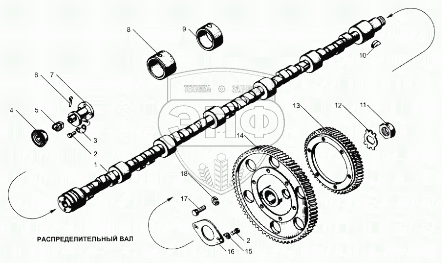 Каталог запасных частей к технике: ЯМЗ-240. Распределительный вал