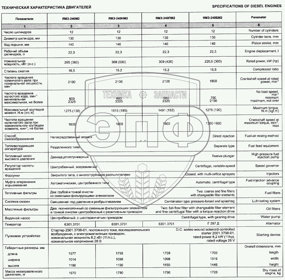 Каталог запасных частей к технике: ЯМЗ-240. Техническая характеристика двигателей