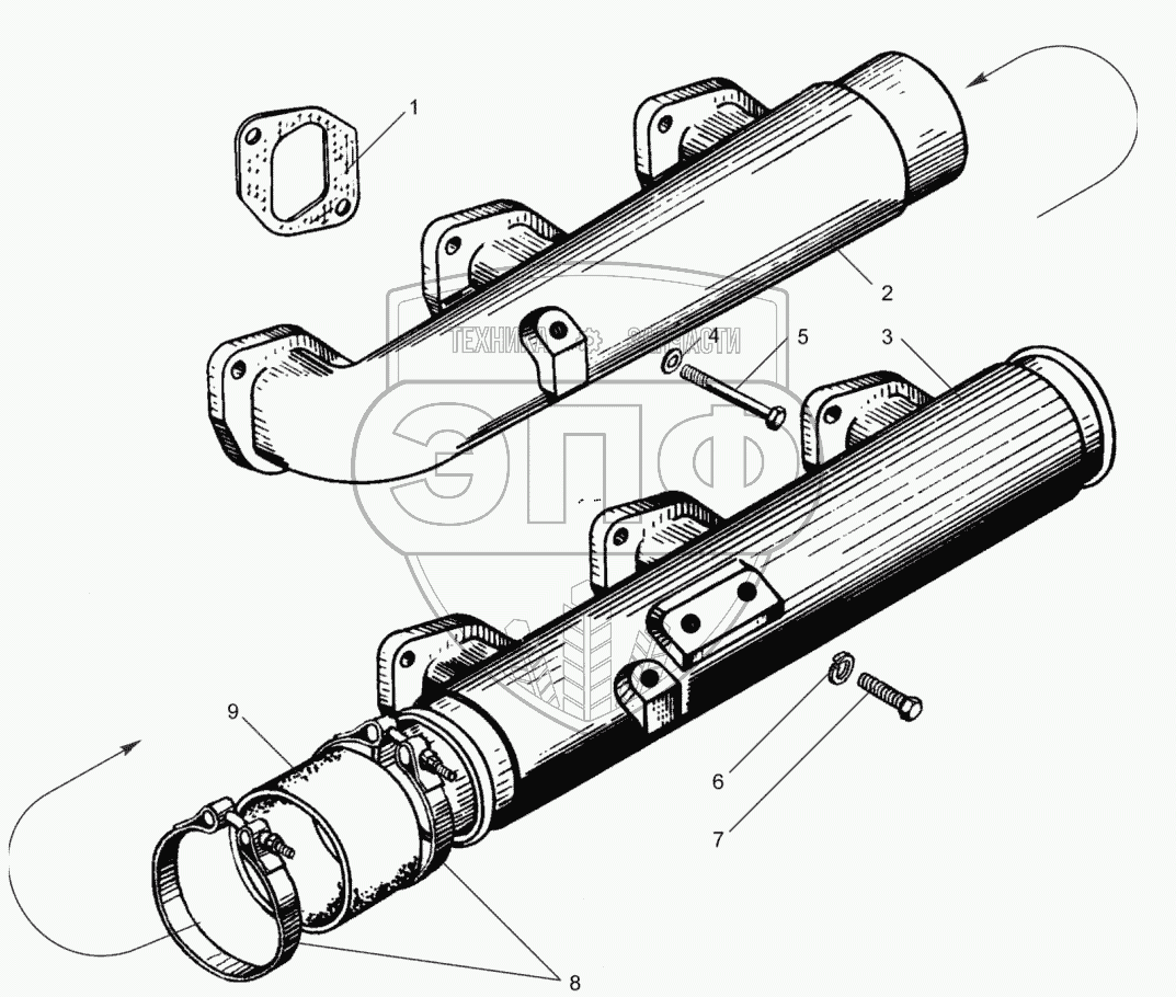 Каталог запасных частей к технике: ЯМЗ-240. Трубопроводы впускные ЯМЗ-240М2