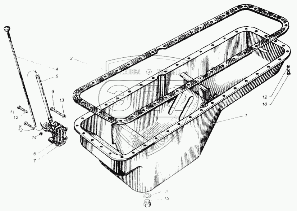 Каталог запасных частей к технике: ЯМЗ-240, 240Б, 240Н, 240П. Поддон блока цилиндров