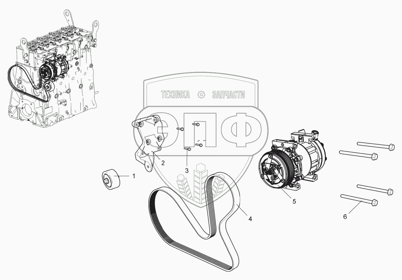 Каталог запасных частей к технике: ЯМЗ-53402. Компрессор кондиционера