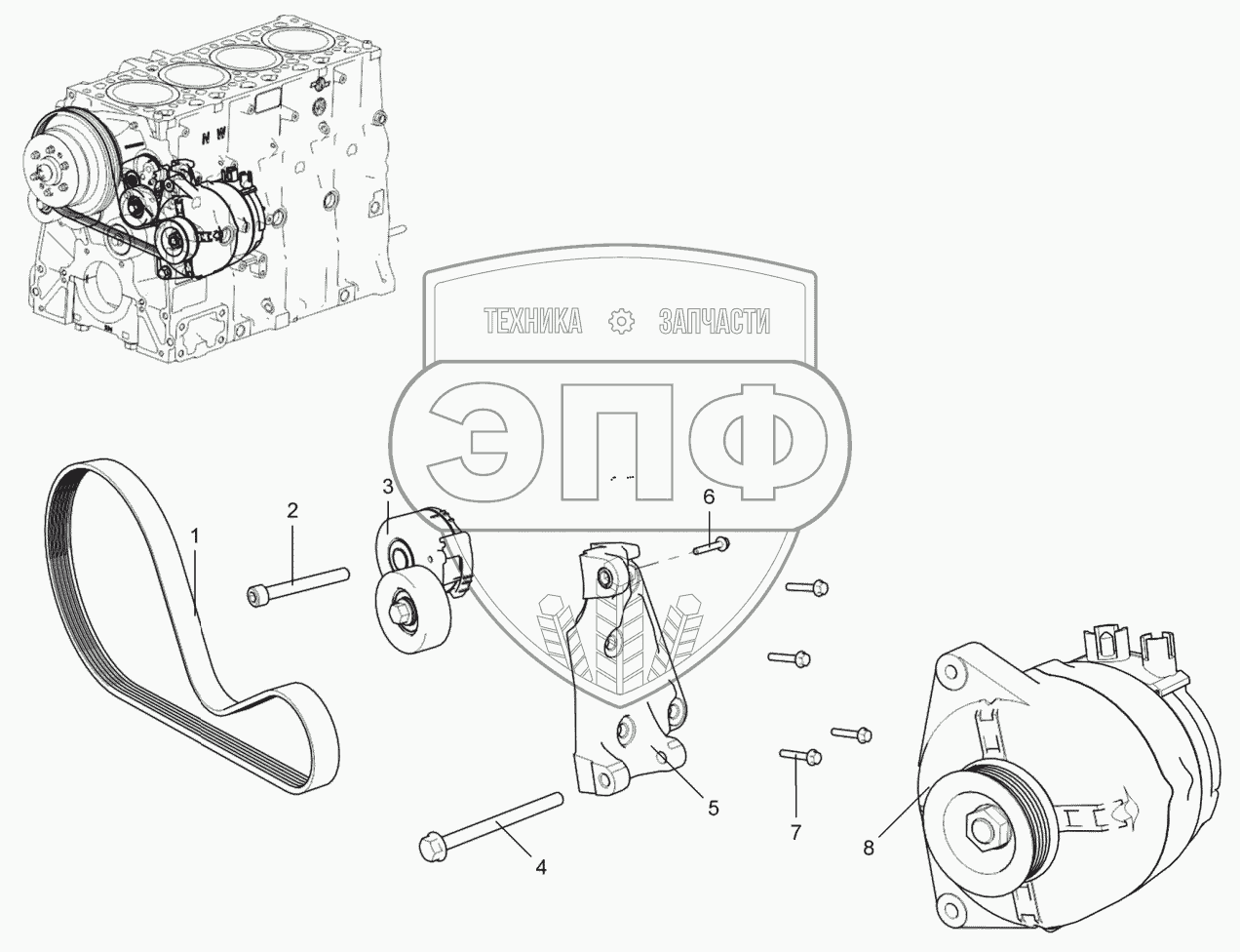 Каталог запасных частей к технике: ЯМЗ-53402. Привод генератора