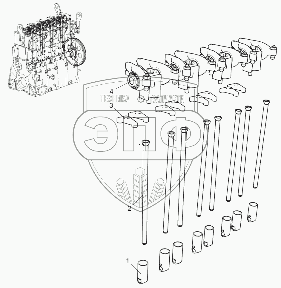 Каталог запасных частей к технике: ЯМЗ-53402. Привод клапанов