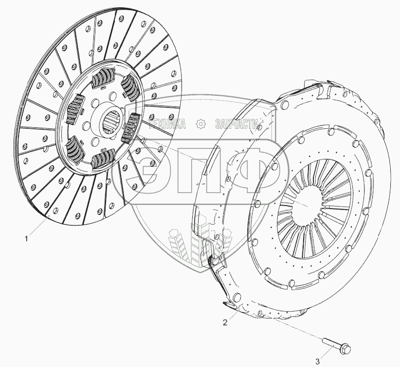 Каталог запасных частей к технике: ЯМЗ-53443. 36241.1600010 Установка сцепления