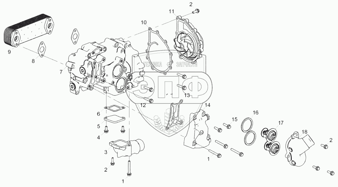 | 14 | 5340.1012012 | Корпус масляного фильтра с клапаном теплообменника | Нет на складе | |
