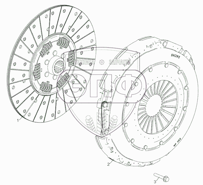 Каталог запасных частей к технике: ЯМЗ-534. 36241.1600010 Установка сцепления