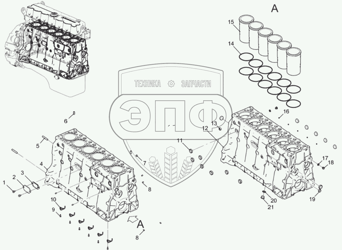 Каталог запасных частей к технике: ЯМЗ-536-100. Блок цилиндров