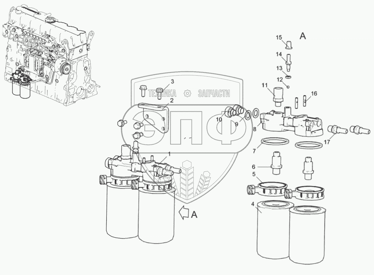 | 8 | 536.1117012 | Корпус топливного фильтра с ввертышами | Нет на складе | |