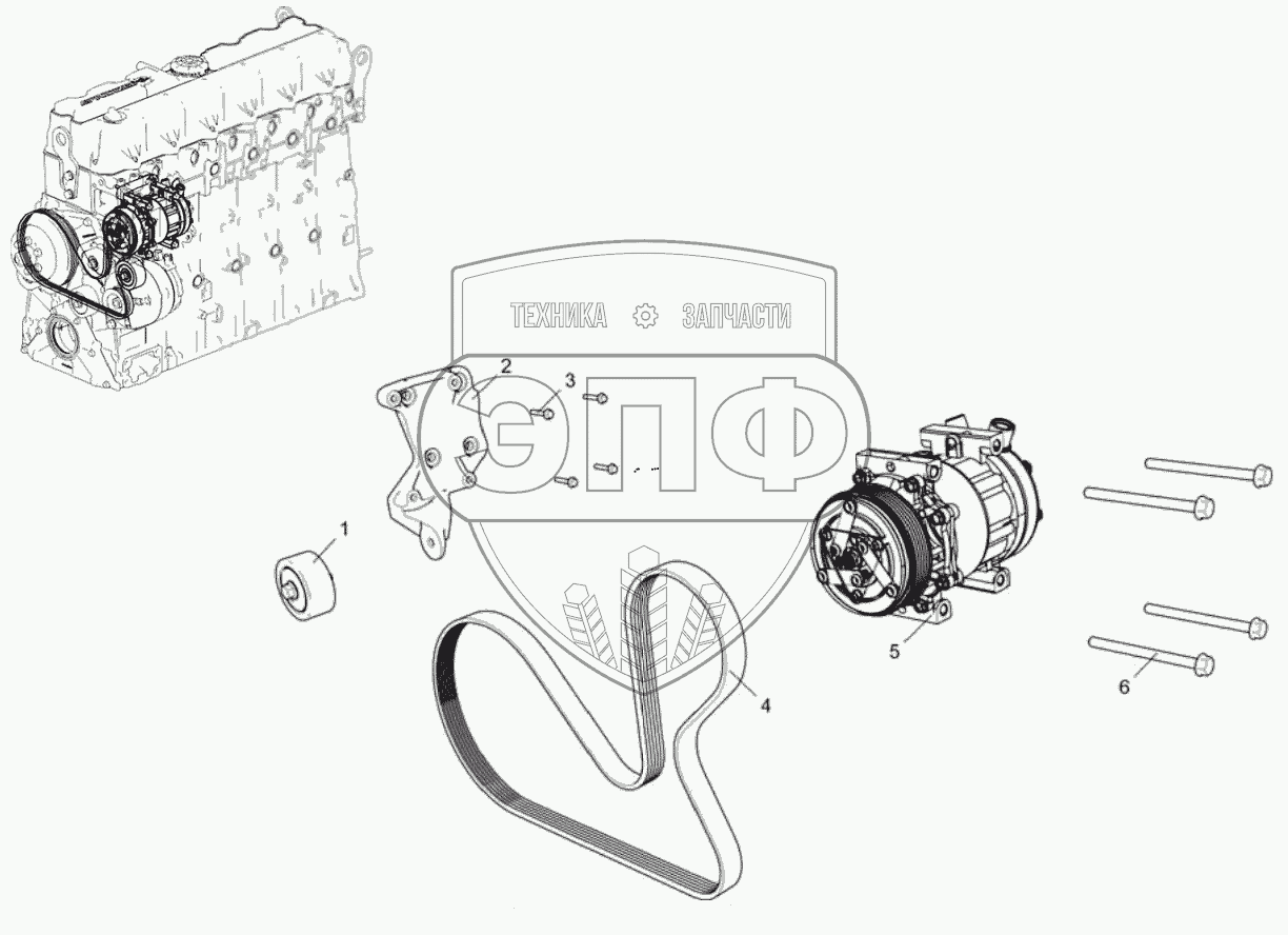 Каталог запасных частей к технике: ЯМЗ-536-100. Компрессор кондиционера