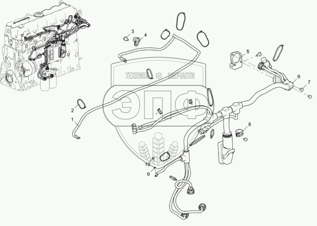 Каталог запасных частей к технике: ЯМЗ-536-100. Жгут промежуточный