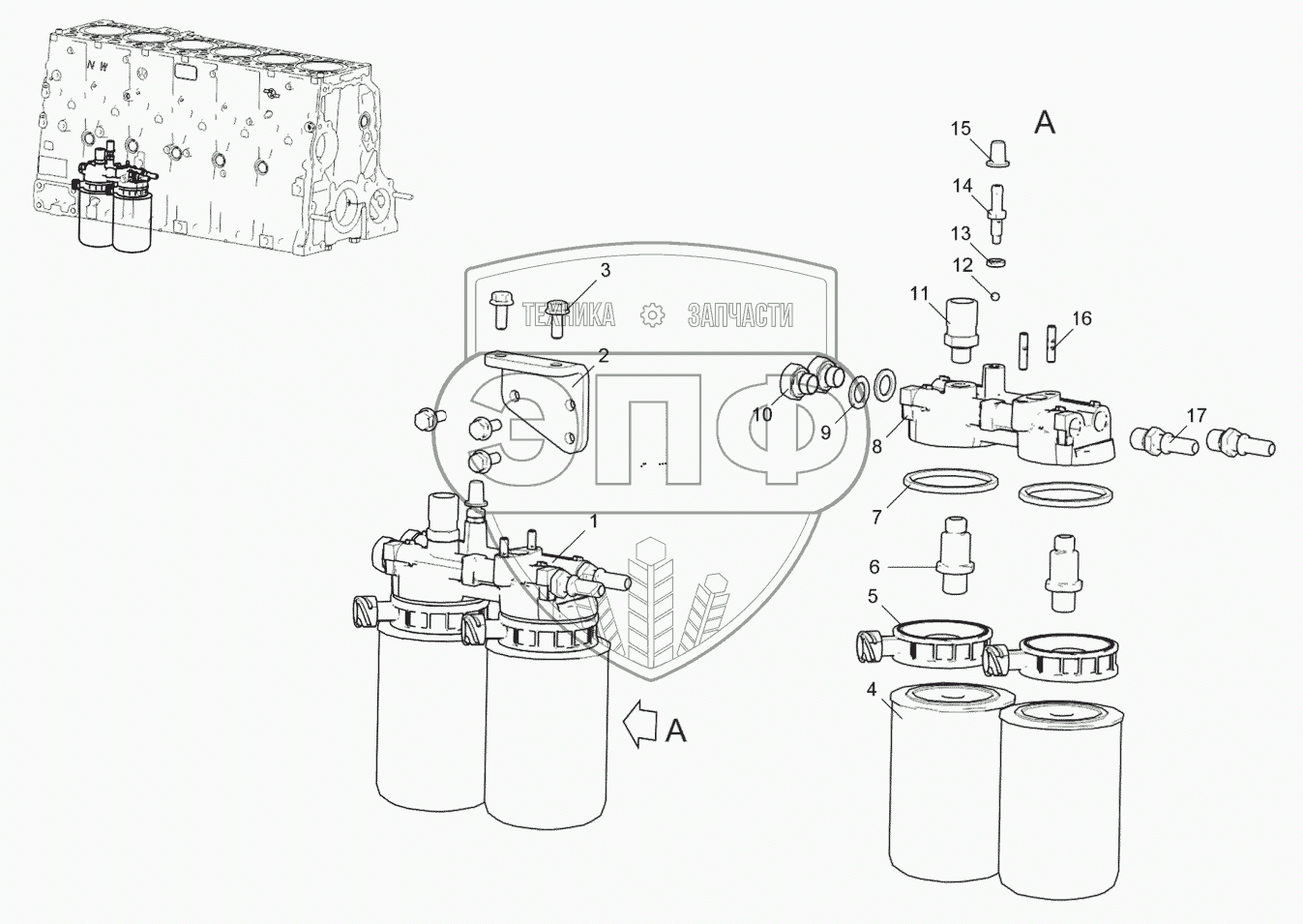 | 8 | 536.1117012 | Корпус топливного фильтра с ввертышами | Нет на складе | |