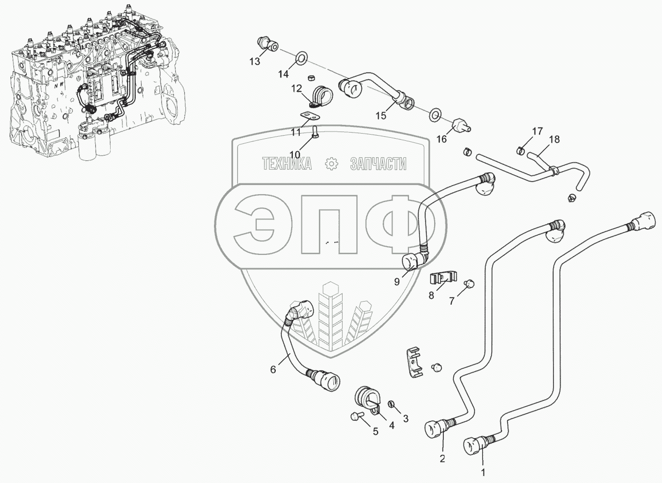 Каталог запасных частей к технике: ЯМЗ-536. Трубопроводы топливные 536-30-110400-010