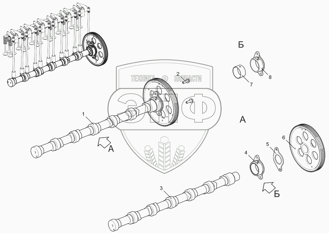 Каталог запасных частей к технике: ЯМЗ-536. Вал распределительный 536-30-100600-010