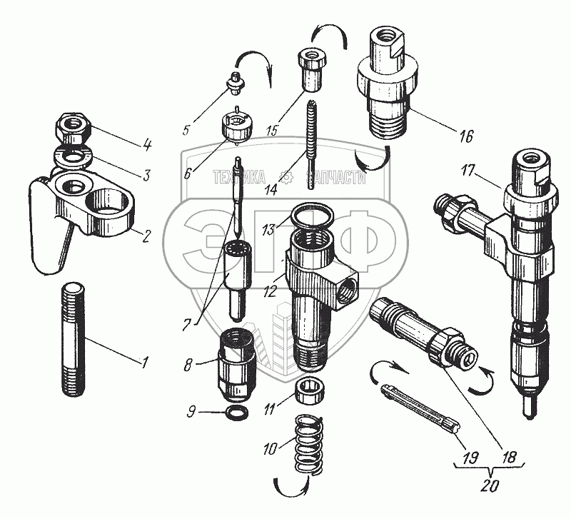 Каталог запасных частей к технике: ЯМЗ-6582.10 (Евро 3). Форсунка