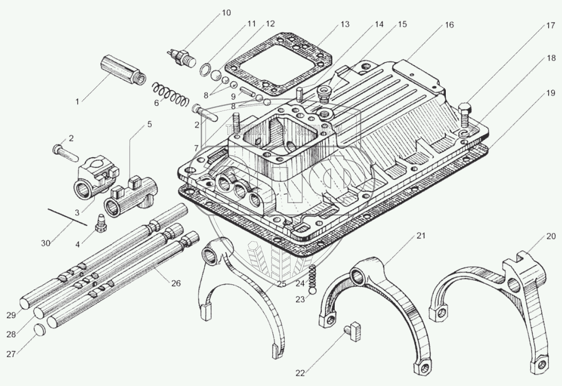 Каталог запасных частей к технике: ЯМЗ-7511.10. Механизм переключения коробки передач