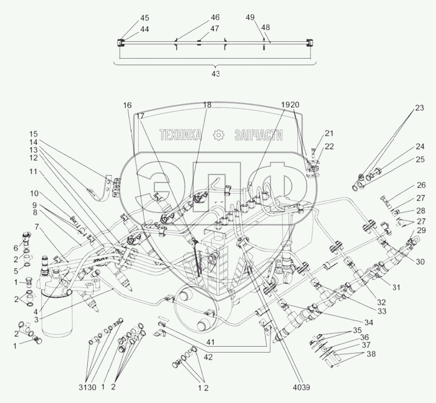 | 34 | 7511.1104318-11 | Трубка топливная 5-й секции ТНВД | Нет на складе | |