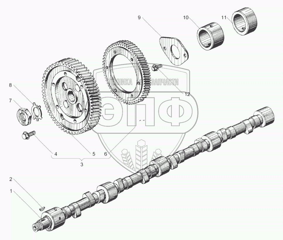 Каталог запасных частей к технике: ЯМЗ-7511.10. Вал распределительный