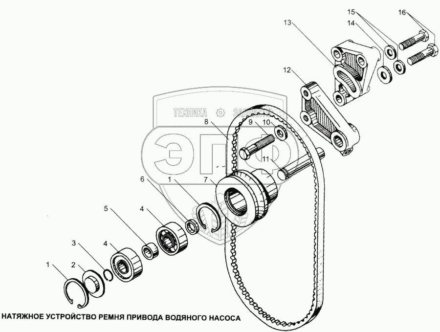 Каталог запасных частей к технике: ЯМЗ-7511. Натяжное устройство ремня привода водяного насоса
