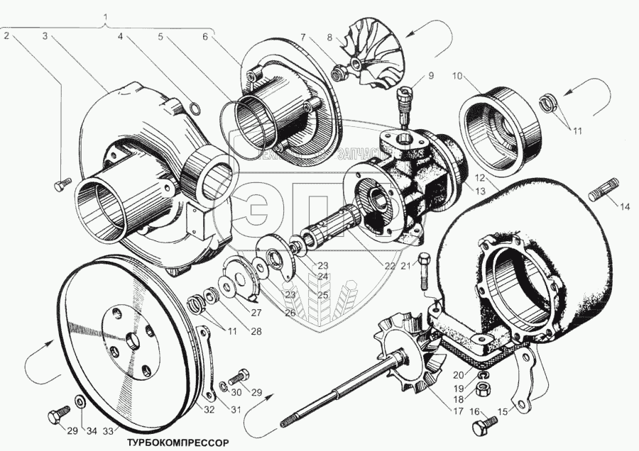 Каталог запасных частей к технике: ЯМЗ-7511. Турбокомпрессор