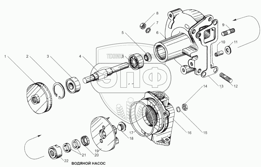 Каталог запасных частей к технике: ЯМЗ-7511. Водяной насос