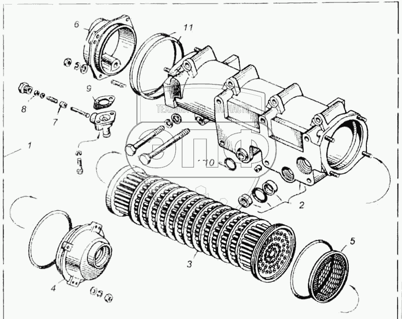 Каталог запасных частей к технике: ЯМЗ-8401. Водомасляный радиатор