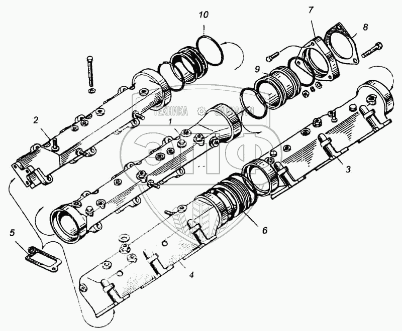 Каталог запасных частей к технике: ЯМЗ-8401. Впускные коллекторы