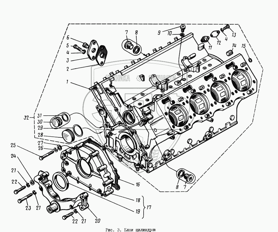 Каталог запасных частей к технике: ЯМЗ-8421.10. Блок цилиндров