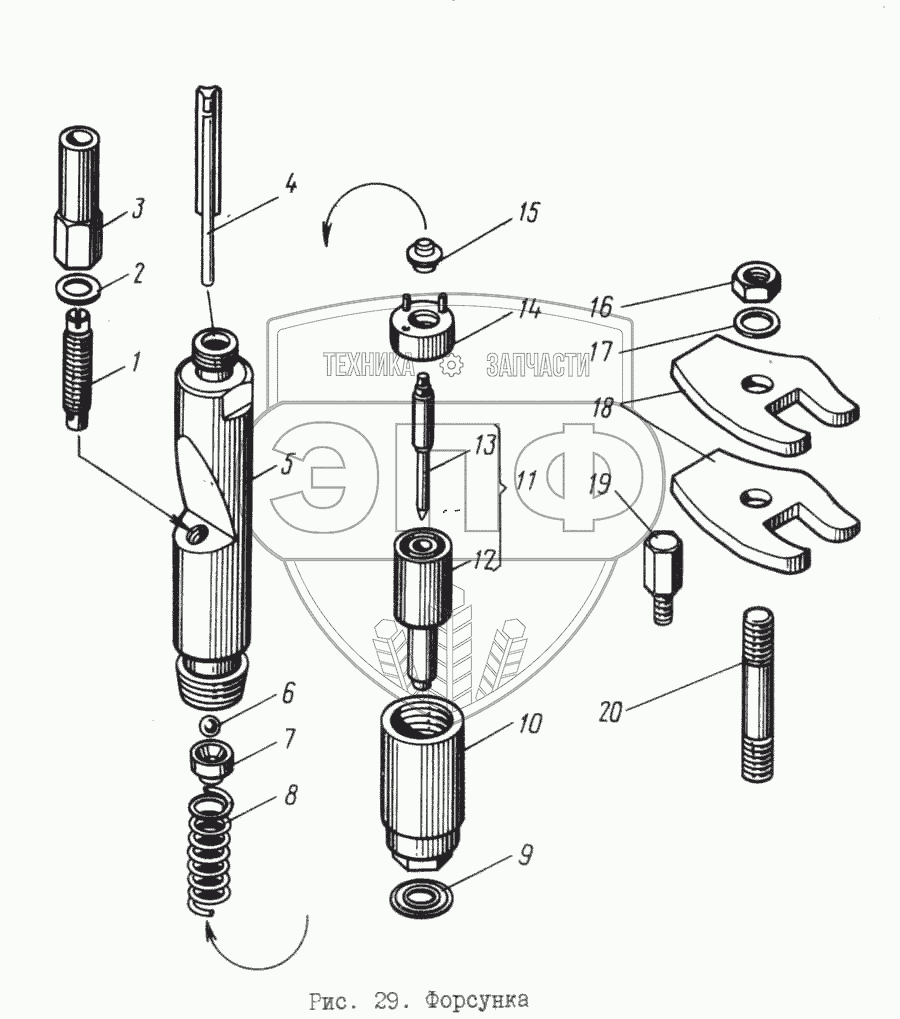 Каталог запасных частей к технике: ЯМЗ-8421.10. Форсунка