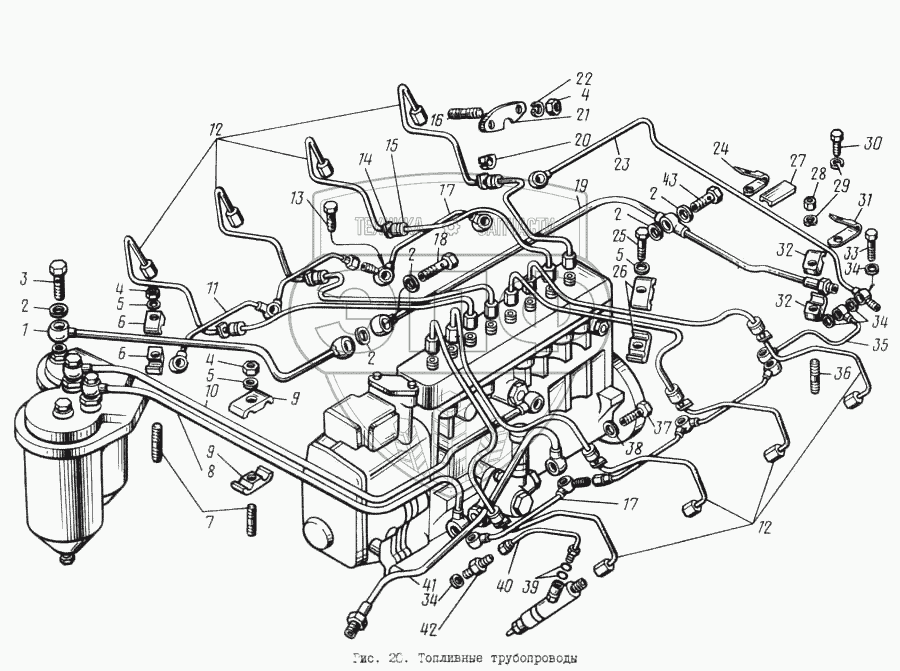 Каталог запасных частей к технике: ЯМЗ-8421.10. Топливные трубопроводы