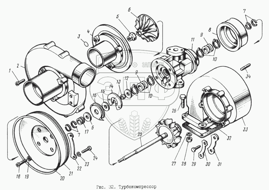 Каталог запасных частей к технике: ЯМЗ-8421.10. Турбокомпрессор