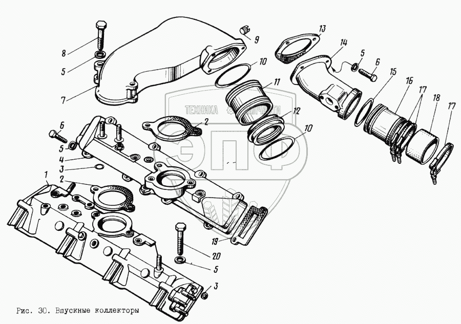 Каталог запасных частей к технике: ЯМЗ-8421.10. Впускные коллекторы
