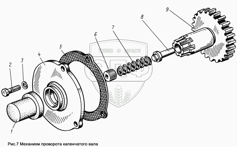 Каталог запасных частей к технике: ЯМЗ-8423.10. Механизм проворота коленчатого вала
