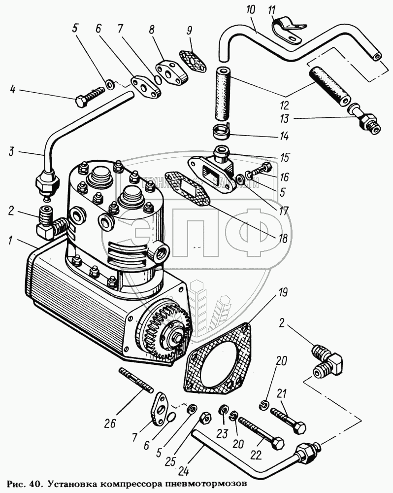 Каталог запасных частей к технике: ЯМЗ-8423.10. Установка компрессора пневмотормозов