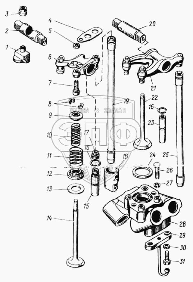 Каталог запасных частей к технике: ЯМЗ-8423. Клапаны и толкатели